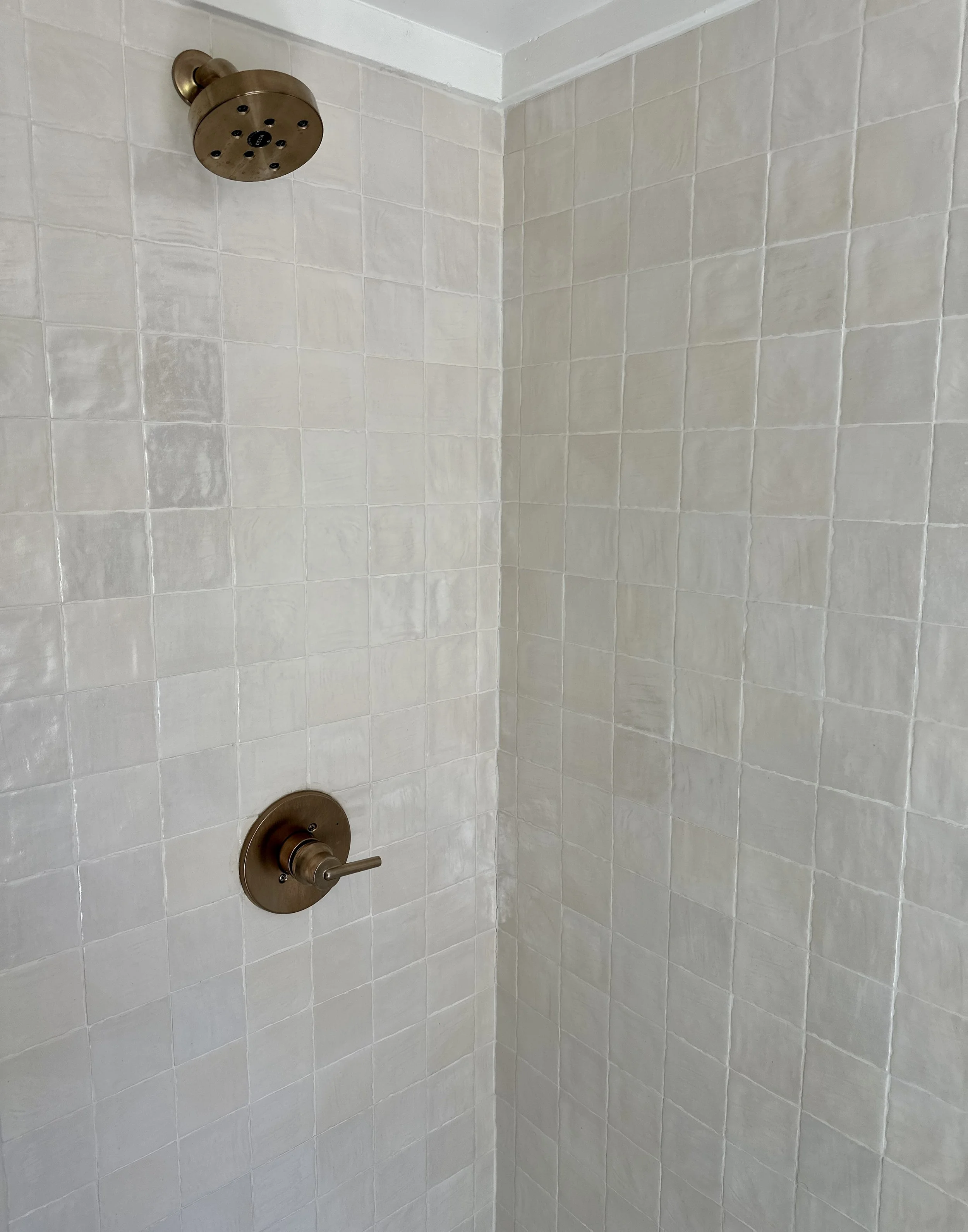 38” x 38” tile neo-angle tile shower, glass enclosure